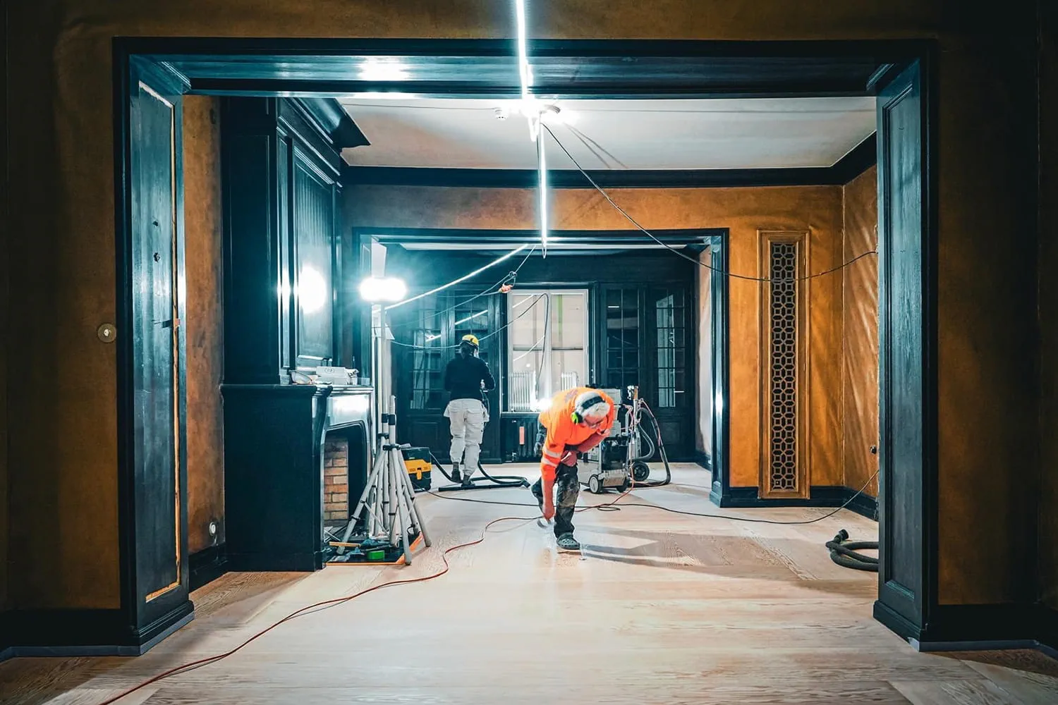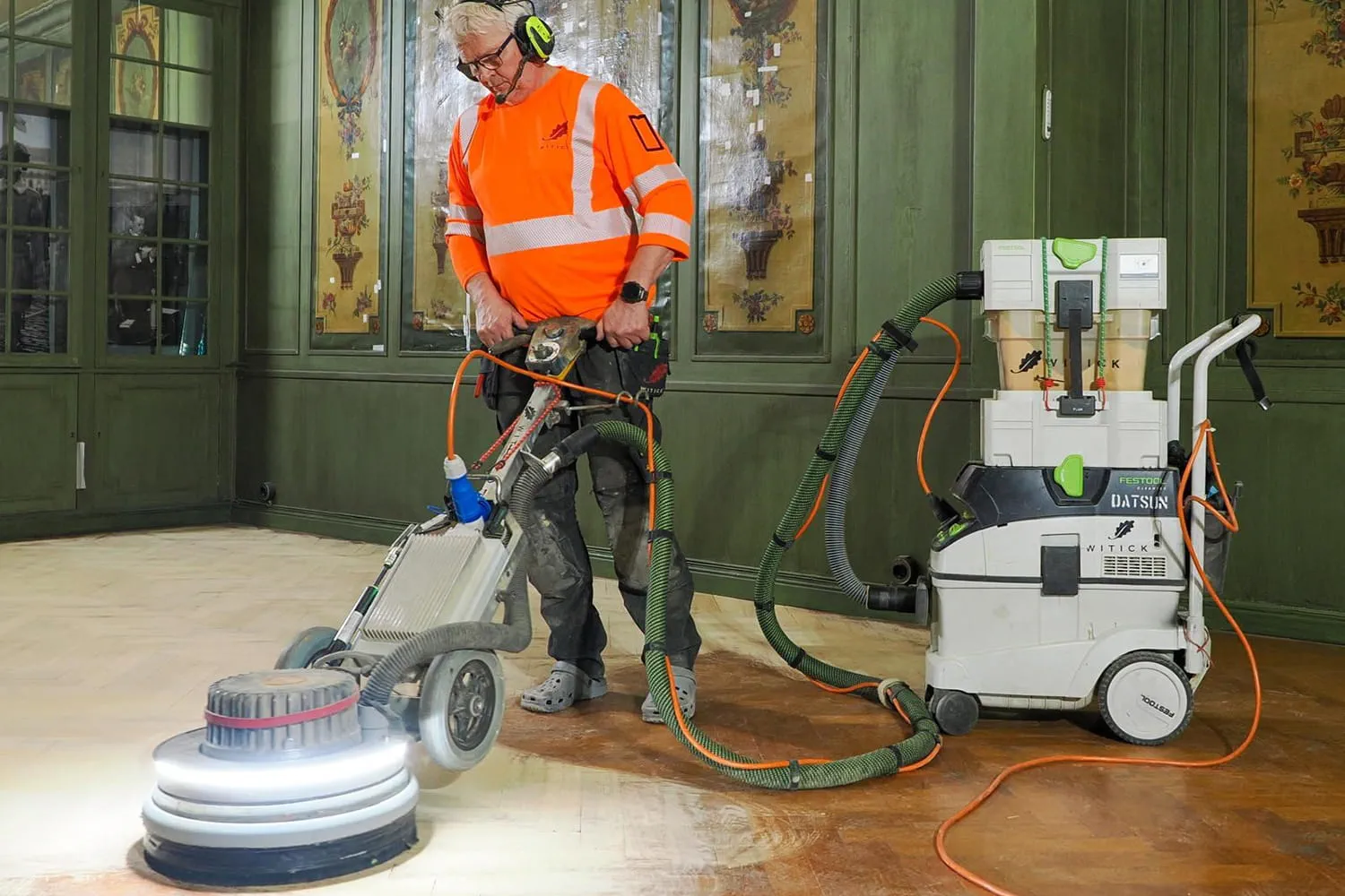 Tämä yhdistelmä tehokasta pölynpoistoa ja ilmanpuhdistusta teki mahdolliseksi sen, että vaativaa kunnostustyötä pystyttiin tekemään arvoa kunnioittaen – tavalla, joka on sopusoinnussa sekä menneisyyden että nykypäivän korkeimpien työympäristövaatimusten kanssa.Viimeistelyä arvokkaaseen ympäristöön – öljyäminen ETSC 2 -hiomakoneella