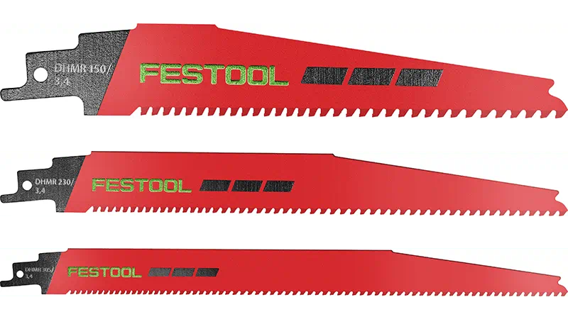 Jos työkappale on sahattava seinän tasalta, sen voi tehdä mainiosti Festoolin valikoimaan kuuluvilla, erittäin joustavilla bimetallisahanterillä (Universal ja Metal).