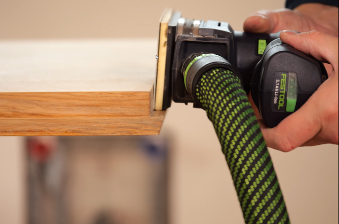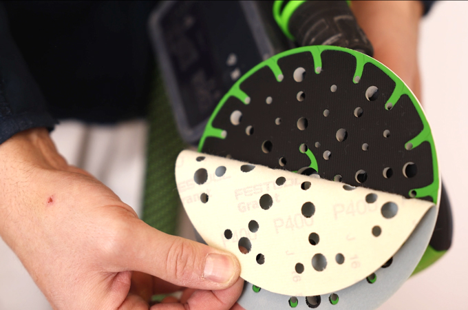 Valmistele työalue, jotta voit työskennellä puhtaana ja pölyttömänä. Suosittelemme sopivaa järjestelmää, joka koostuu pölynpoistosta, hiomakoneesta ja sopivista hiomapapereista.
