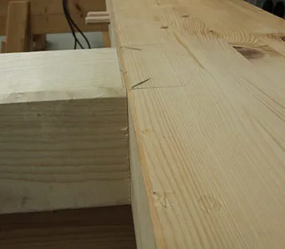 Tee täsmällistä liitosta varten vielä puupylvään tarkka merkintä yläpalkkiin.