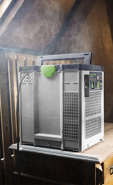 Kun sahataan, jyrsitään tai hiotaan, pölyä syntyy ammattimaisesta poistosta huolimatta. Ilmanpuhdistimet suodattavat tämän pölyn pois ilmasta. Halkaisijaltaan 1 µm:n hieno pölyhiukkanen tarvitsee vajaat 7 tuntia laskeutuakseen yhden metrin (lähde: BG Bau). Ilmanpuhdistimemme ansiosta sinulla on vähemmän siivoamista, enemmän puhtautta ja parempi ilmanlaatu.